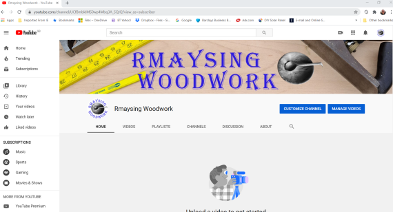 I mentioned above in section 4 that I am trying to showcase some of the things I am interested in on YouTube. Woodwork being one of them. So, I have created a YouTube Channel called Rmaysing Woodwork. On it I will try to show people how they can make things simply with some basic tools. So, to do this I had to create a logo and some channel art for it. This is all done now and maybe over the weekend or next week I will add some videos to it and start trying to get subscribers. Once I have 100 subscribers, so my expert YouTube son tells me, my channel will be searchable. So, look out for me.